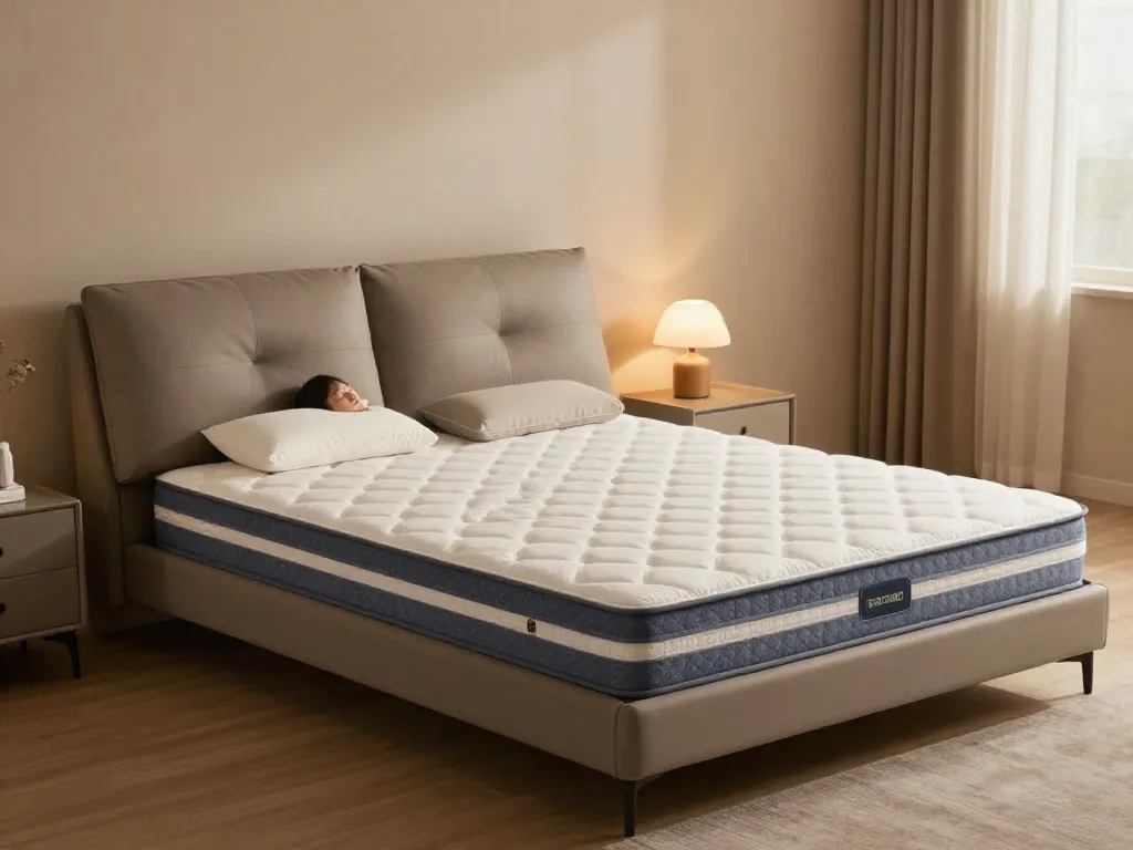 Le matelas repose sur une base qui garantit ventilation et soutien long terme.