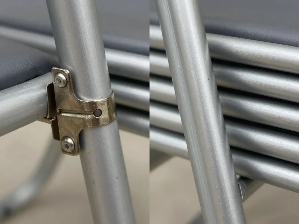 Chaises Pliantes Les charnières et rivets constituent des points de rupture potentiels en usage intensif.