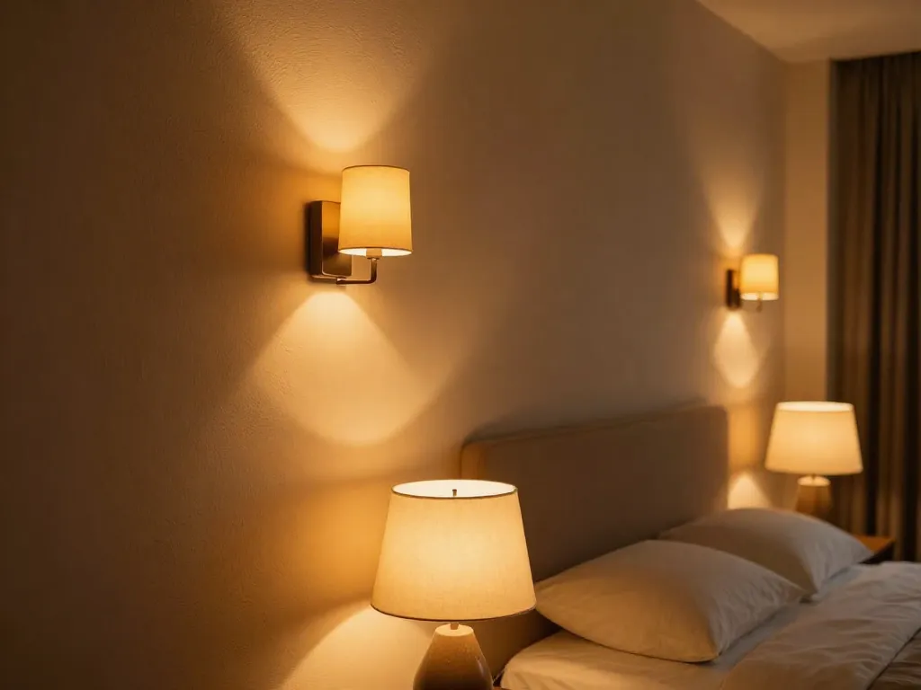 Utilisez des appliques murales orientables pour libérer les tables de chevet. Ajoutez une lampe à poser discrète. L'objectif ? créer des zones de lumière, pas éclairer uniformément.