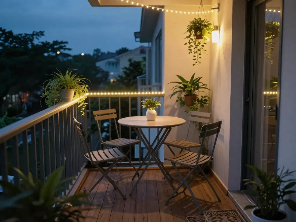 - Privilégiez le mobilier pliable ou suspendu (table de balcon rabattable) pour libérer le sol hors des repas