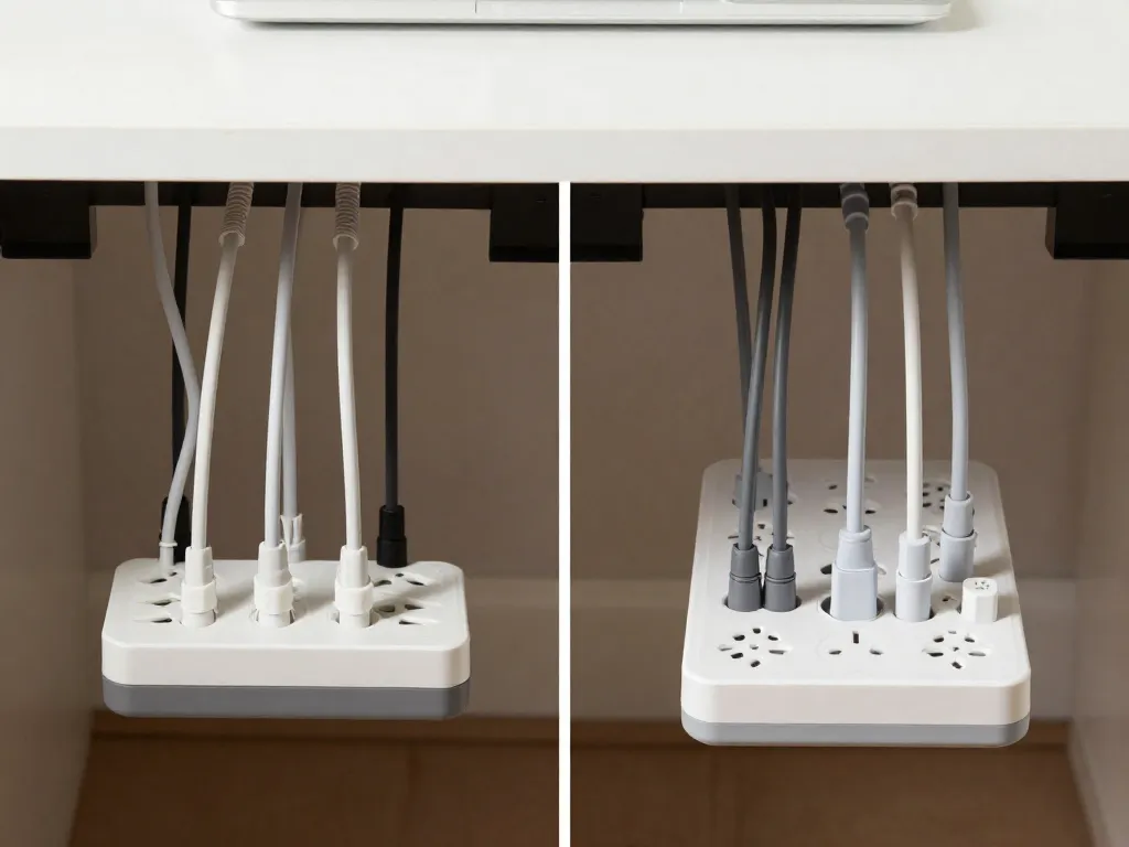 Rien ne sabote l'harmonie d'une chambre comme un amas de fils électriques. Utilisez des gaines, des boîtiers cache-câbles, ou fixez les multiprises sous le plateau du bureau. L'organisation des câbles est un détail qui transforme l'espace de "bureau coincé en chambre" en "chambre avec coin bureau soigné".