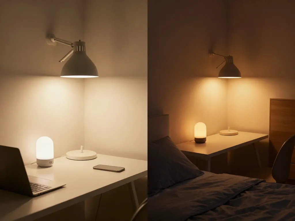 Le soir, la chambre doit retrouver une température de couleur chaude (2700 Kelvins). Cela signale au cerveau l'arrivée de la phase repos et stimule la production de mélatonine. L'ADEME recommande de multiplier les sources lumineuses pour adapter l'ambiance.