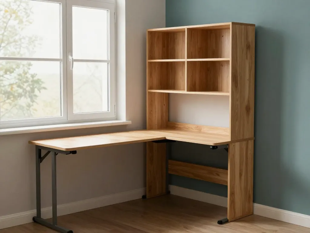À la fin de la journée, le plateau se replie et fait disparaître l'espace de travail. C'est la solution idéale pour les petits espaces, et elle renforce la coupure mentale entre travail et repos.