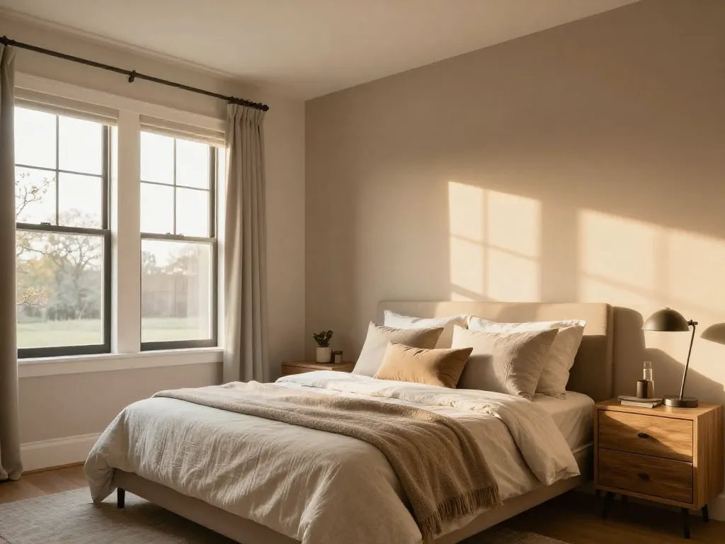 Optez pour une teinte neutre ou pastel pour les grandes surfaces. Les neutres (blanc cassé, grège, taupe) libèrent votre décoration accessoire pour évoluer au fil des saisons sans repeindre.