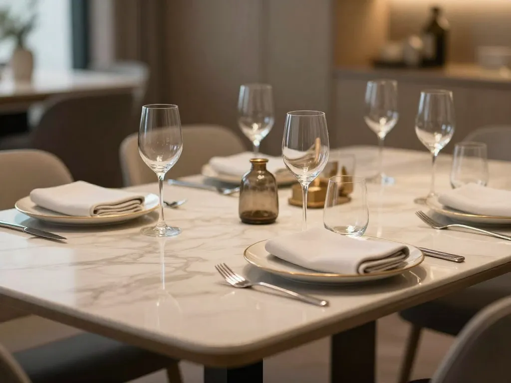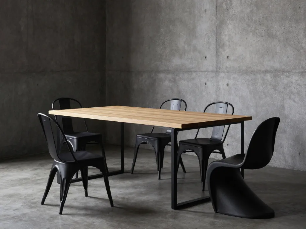 Si les chaises sont l'attrait : Des chaises designer (type Eames, Tolix, Wishbone) demandent une table minimaliste. Un plateau simple sur pieds discrets, voilà tout ce qu'il faut. La table devient le support, pas la distraction.