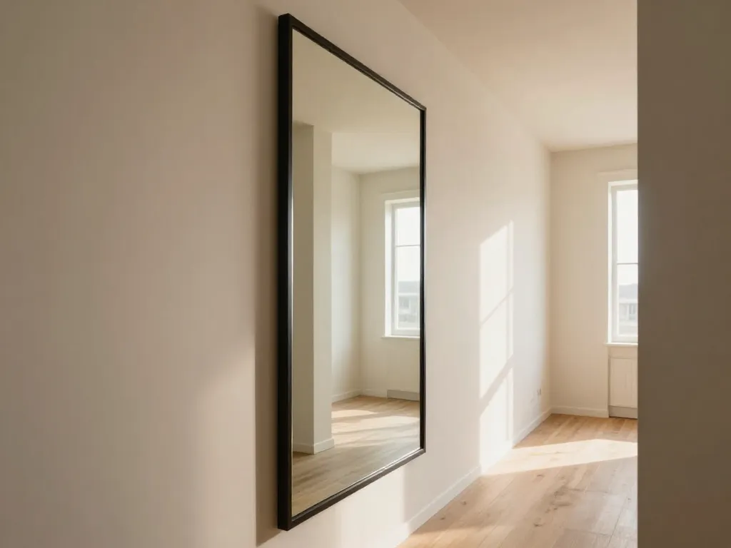 Les miroirs XXL un grand miroir sur l'un des murs latéraux multiplie la largeur perçue. Attention : évitez deux miroirs face à face, qui créent un effet de répétition infini souvent dérangeant.