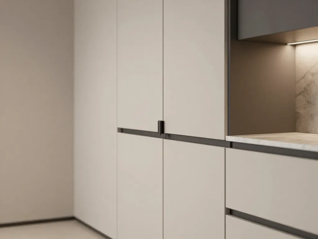 Dans 90 cm de large, une poignée de placard qui dépasse devient un obstacle physique et visuel. Installez des systèmes "Push-to-open" ou des poignées à encoche intégrées.