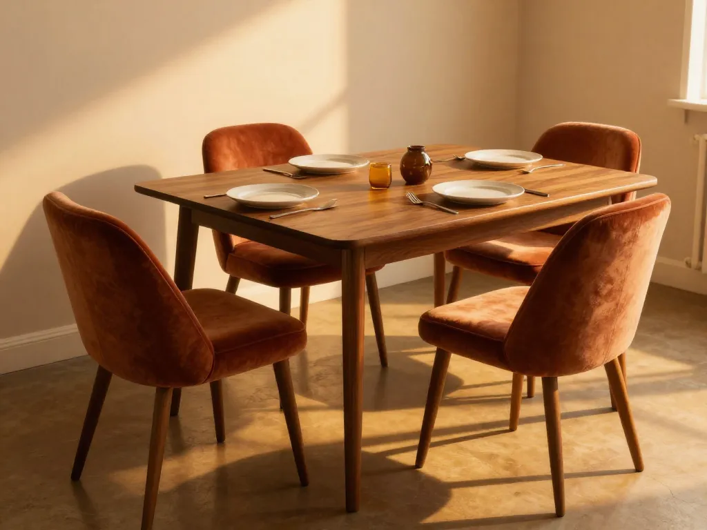 Conseil immédiat : Associez des chaises terracotta à une table en noyer pour un look rétro-chic des années 70 réinventé.