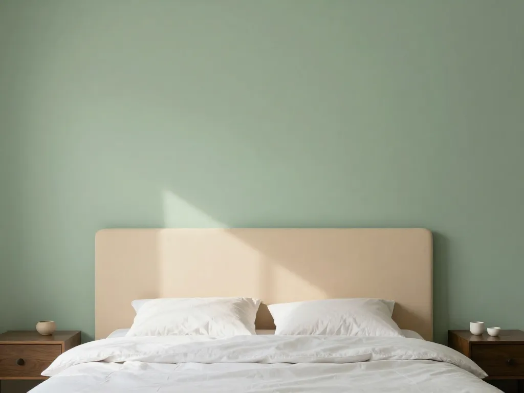 Dessinez directement la forme de votre tête de lit sur le mur avec une peinture contrastante. C'est minimaliste, économique et facilement modifiable. Idéal pour les petits espaces.